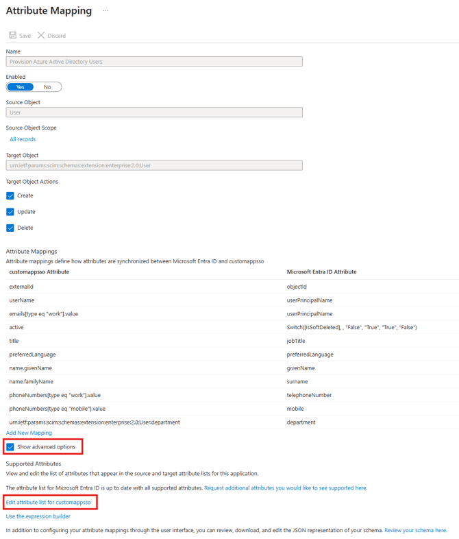 then click on 'Show advanced options', followed by 'Edit attribute list'