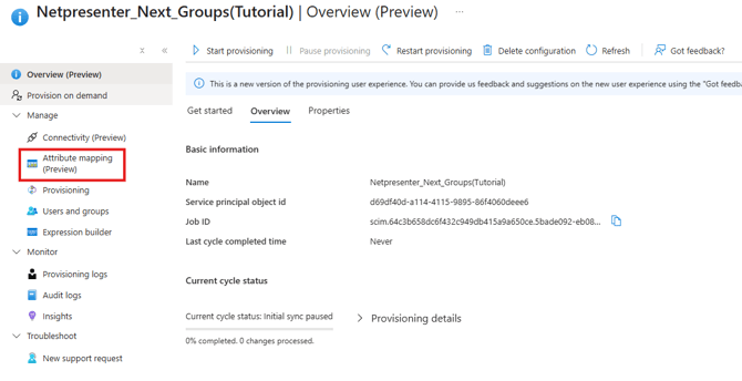 From the Provisioning screen, click Attribute mapping