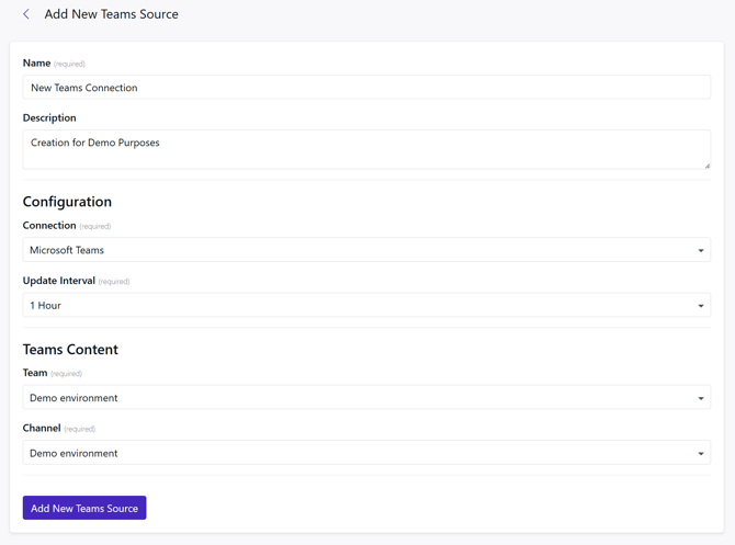 This guide explains how to configure Micsrosoft Teams as an External Source in the Netpresenter Content Hub. It assumes that the Microsoft Teams Connection has already been created.